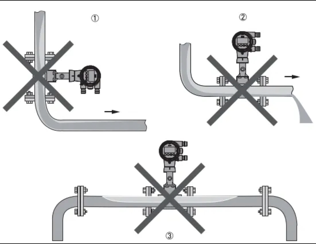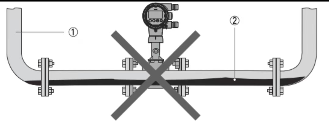 2.फ्लोमीटर को ऐसे स्थान पर स्थापित किया जाना चाहिए जो यह सुनिश्चित करता हो कि सामान्य माप प्राप्त करने के लिए पाइप पूरी तरह से भरा हुआ है।